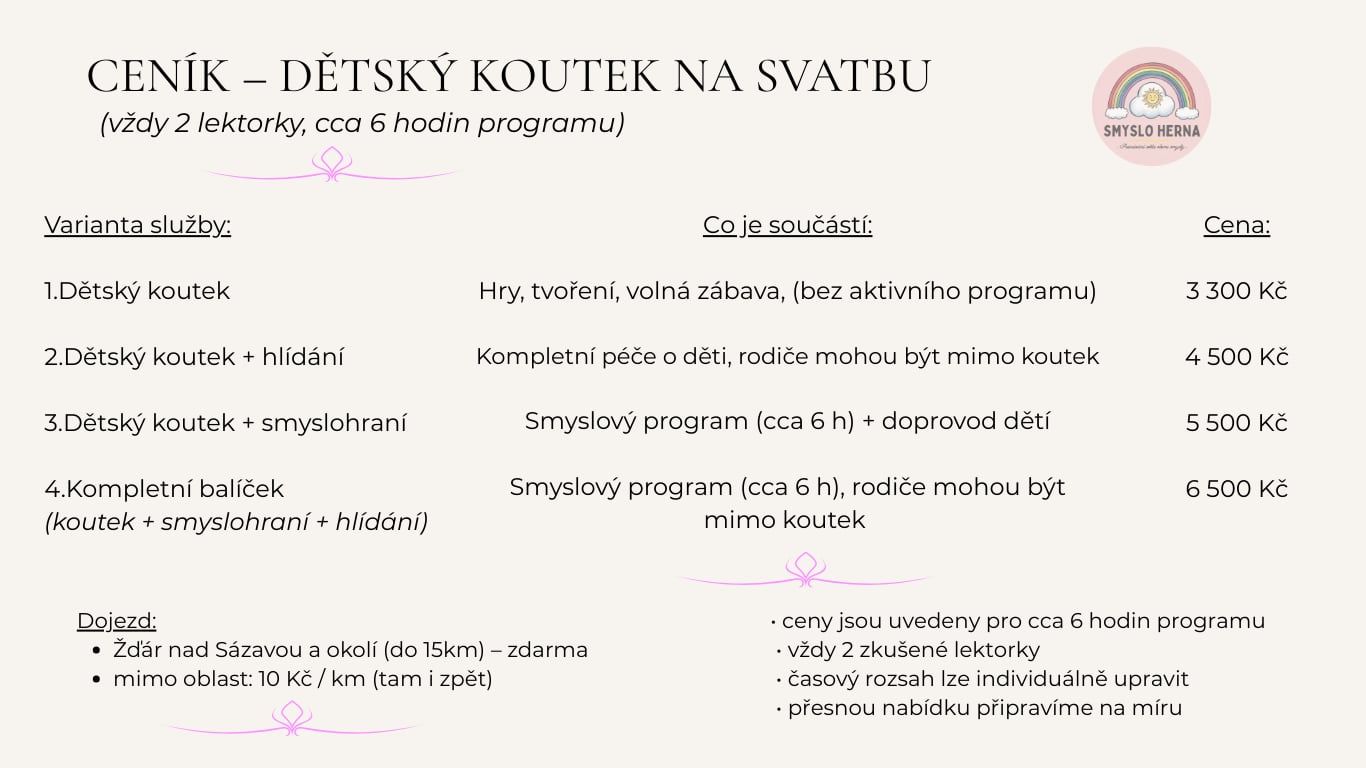 Kompletní balíček (koutek + smyslohraní + hlídání) – 6 500 Kč