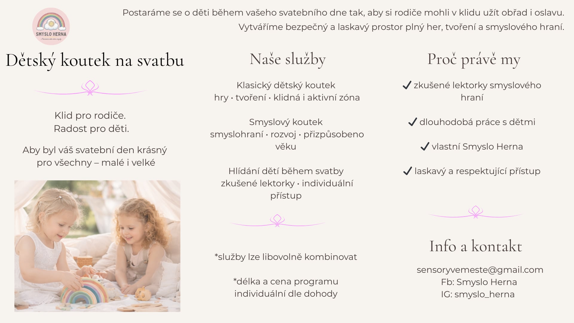 vše ladíme na míru konkrétní svatbě, prostoru i počtu dětí